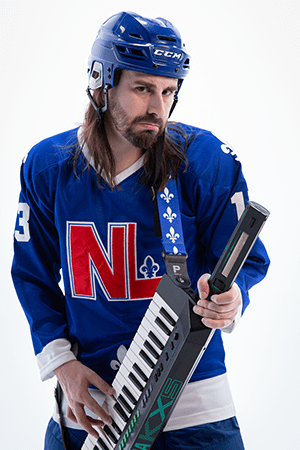 En 2017, lors de la fondation des Costauds, la dominance des claviers dans la musique des années 80 le motive à jouer du synthétiseur et du keytar. Doté d’une bonne oreille, il apprend très rapidement les rudiments de cette « maudite machine du diable ». Également auteur, Simon a coécrit avec Guy A. St Cyr le livre Génération Canal Famille. Un ouvrage encyclopédique qui se penche sur cette défunte chaîne jeunesse. Bref, un livre pour les petits bébés !